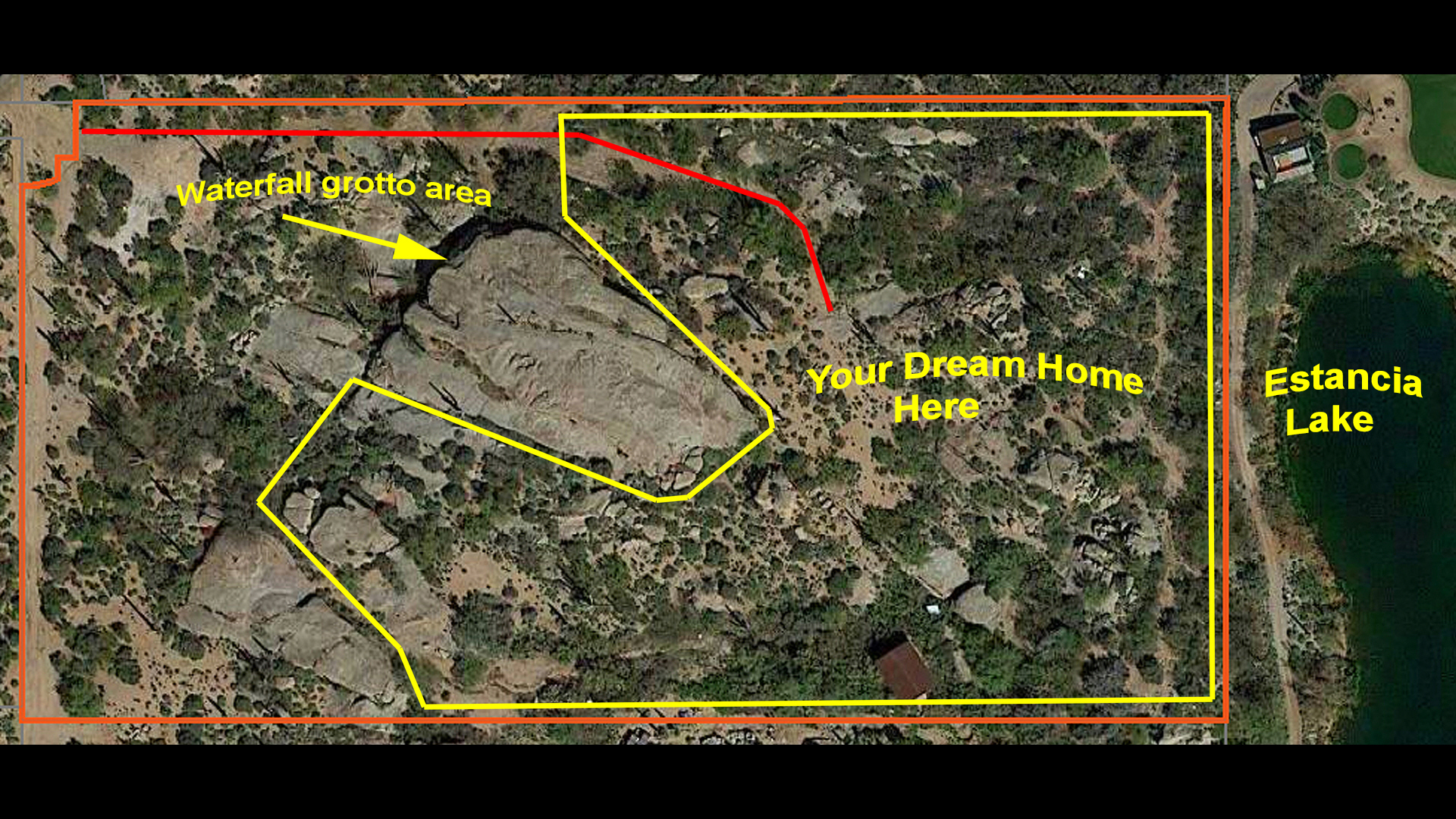 Below boulder outcroppings and on the right, the lot photographed