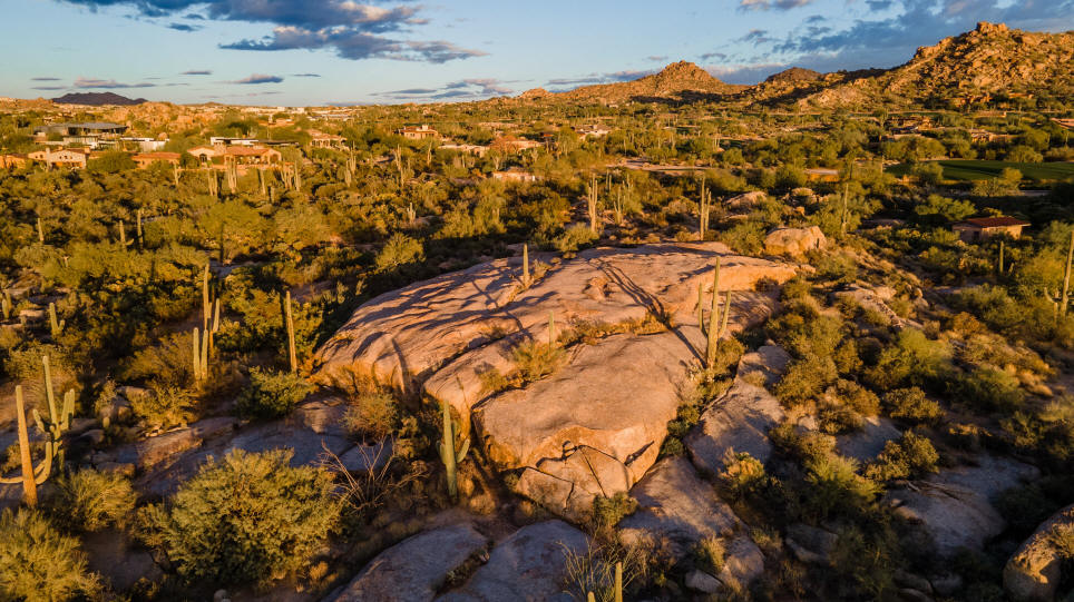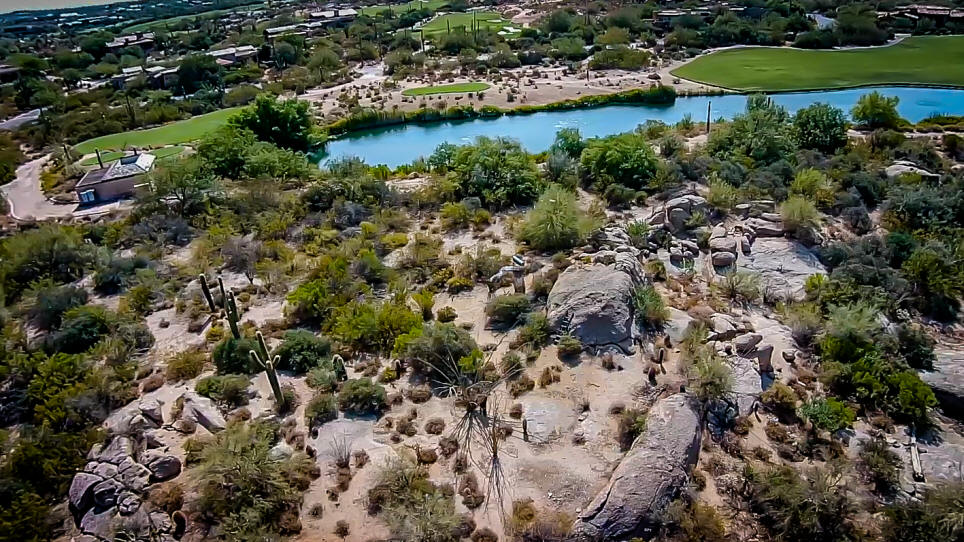 an expanded homesite in the boulders with spectacular views of Pinnacle