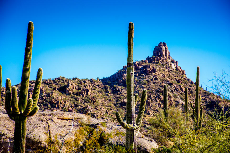 area with a profusion of mature saguaros, ocotillos, and desert