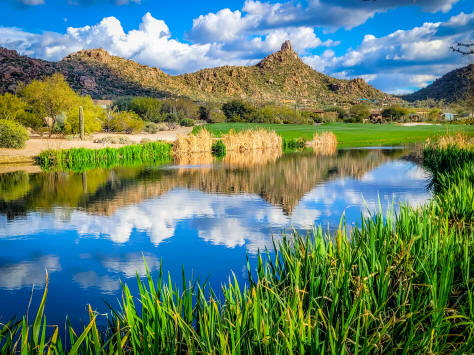 legendary Estancia golf course and pastoral lake, with Pinnacle Peak &