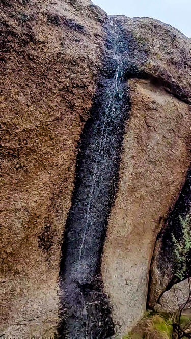 The grotto area captures rain from the large granite monolith, which